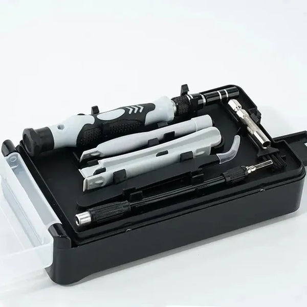 98* precision bits, 1* ABS handle,1*Brush, 3*Pry bar, 1*Tweezers, 1*Adapter, 1*Extension hose, 1*Stick needle, 1*Suction cup, 1*Add magnet, 6*Pry piece