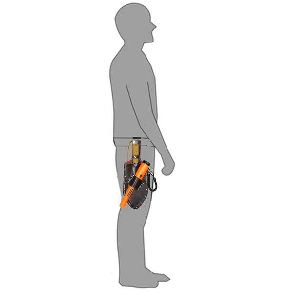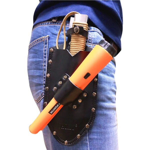 The 2-in-1 Leather Digger Holster integrates pointer detectors and a digger to reduce the need to carry too many packages when going out. The holster is made of pure cowhide, fixed by rivets for more strength. It has double-stitched seams, stitched reinforcement, and a D-ring on the right side. The type hook is connected to the pointer detector bracelet, and the pointer holster is designed with a 60-degree bevel, which makes it convenient to take out the pointer and does not interfere with the digger. The ring design of the belt hanging loop fixes the digger handle to prevent it from shaking in motion. The leather case is reasonable in design and easy to carry, replacing Digger's original nylon leather case and is more durable.