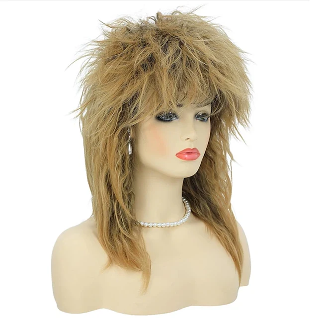 80s Tina Diva Costume Wig for Women Big Hair Blonde Rocker Mullet Wigs Glam Punk Rock Rockstar Cosplay Wig