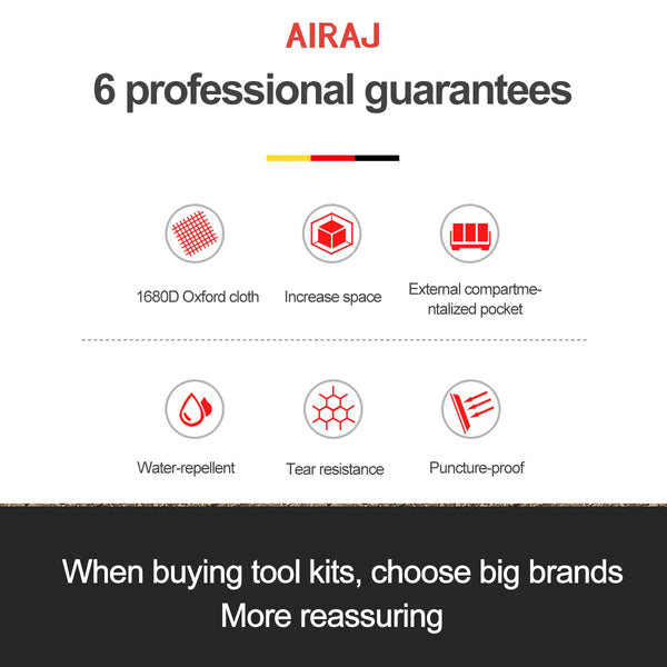 • Customizable :The AIRAJ Multifunctional Tool Bags are customizable, allowing you to add your own labels and organize your tools and equipment in a way that makes sense to you.