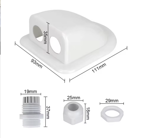 This entry gland can be easily fixed to the roof / wall with a suitable sealant or adhesive (not included).
