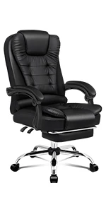 The chair features 150 degree back recline adjustment and 360 degree swivel. You can lock the position of reclining as you wish. Combined with retractable padded footrest, it suits your personalized positions while sitting, sleeping or playing games. An elite in quality and design, your solution to true comfort.