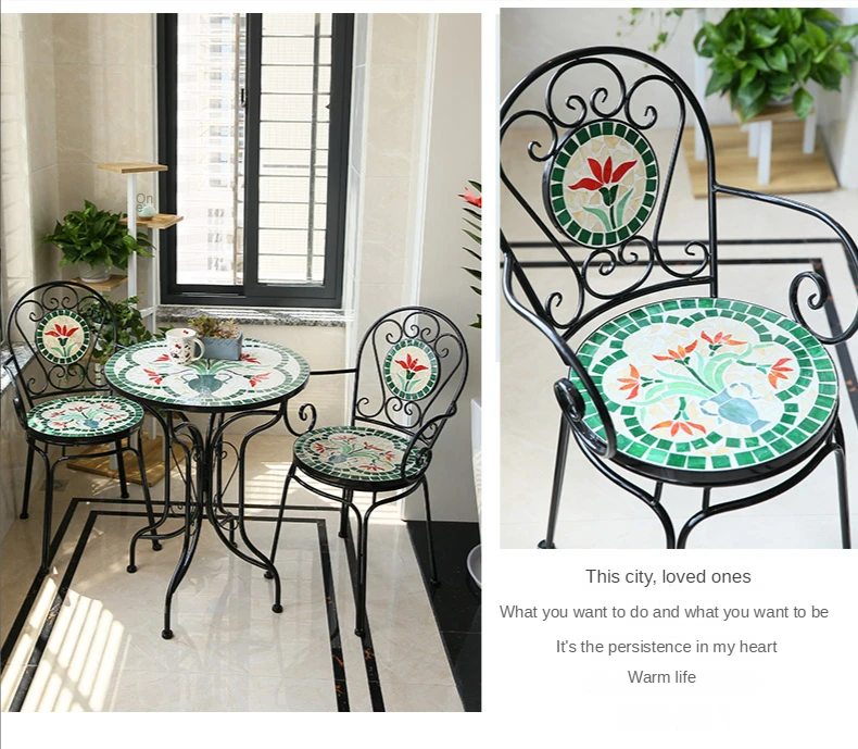 Bistro table set, mosaic patio furniture, outdoor table and chair set, foldable outdoor furniture, garden cafe set, outdoor dining set