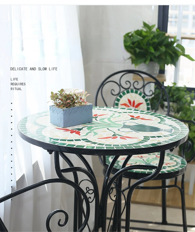 Charming Mosaic Pattern: Beautiful mosaic tabletop adds a touch of elegance to your outdoor decor.