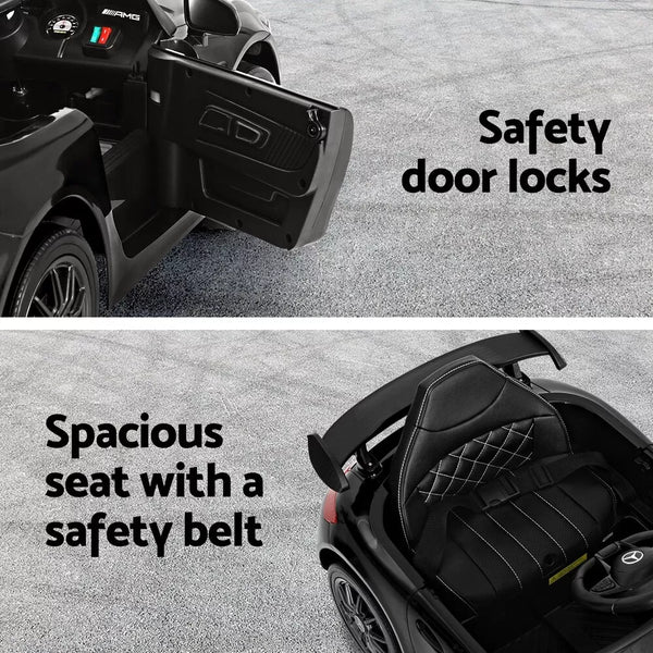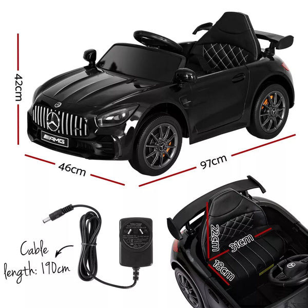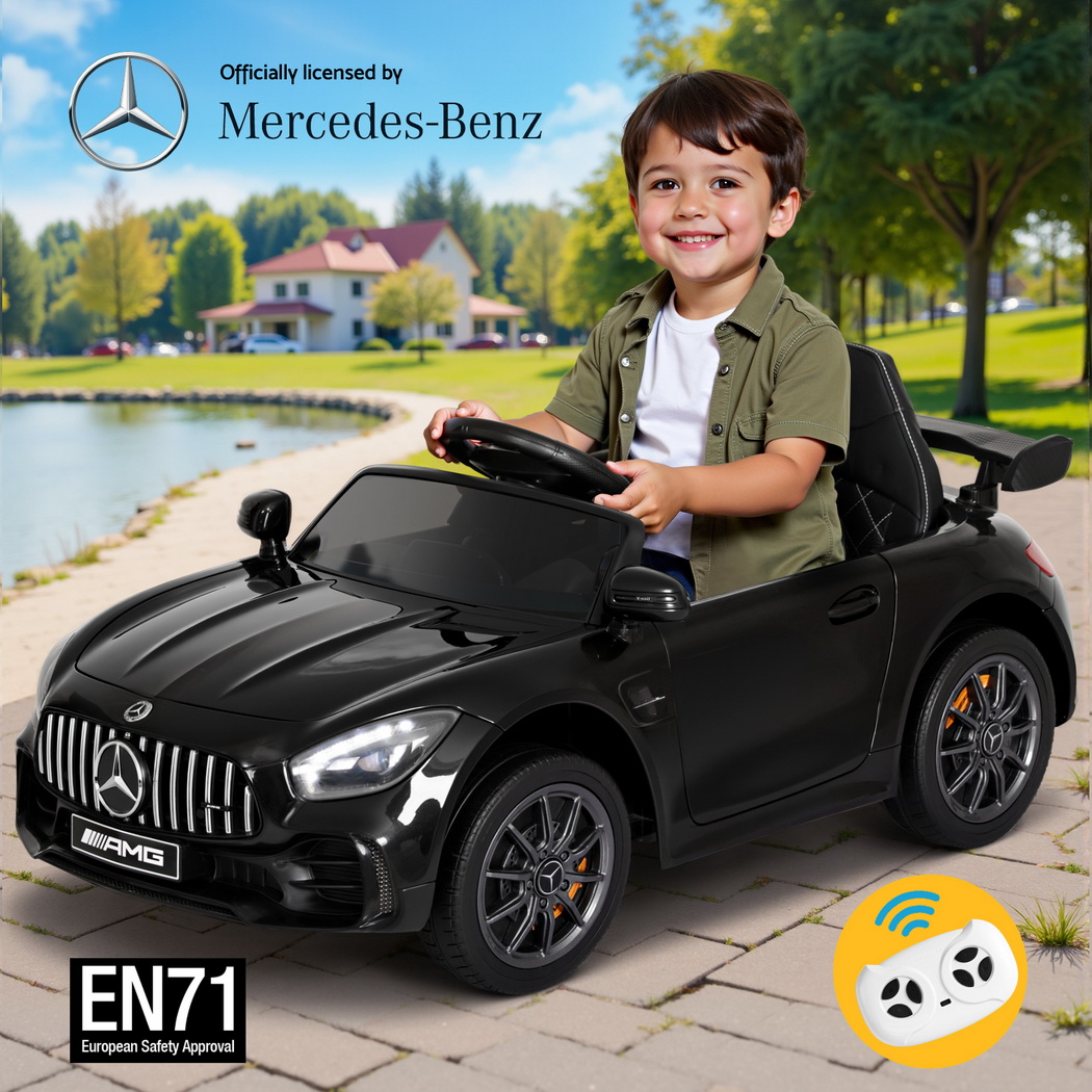 Let your little one experience the excitement of driving a Mercedes-Benz AMG GTR. The steering wheel and acceleration pedal to control the forward and reverse movement give your child control and a realistic driving experience. It comes with some cool entertaining features that will allow your child to have hours of fun. It includes a safety seat belt and a remote control for parent supervision, making it the ideal choice for parents who want a safe and fun way for their children to explore their environment. The licensed Mercedes-Benz Ride on AMG GTR is the perfect gift for any young car enthusiast.