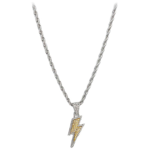 Introducing the Full Zircon Lightning Pendant Necklace by Tide Brand! This unique and stylish pendant is perfect for making a fashion statement and turning heads. Crafted with stainless steel, it is incredibly durable and definitely built to last. This necklace comes with the perfect combination of zircon and lightning design that adds elegance and sophistication to your look. It is ideal not just for parties but also for adding that extra touch to your everyday streetwear or hip-hop style. Whether you are attending a special event or simply want to be the life of the party, this lightweight and comfortable necklace will leave you feeling confident and looking great. Step up your style game with this timeless piece today!