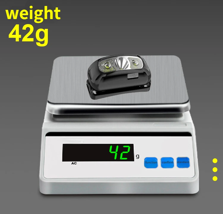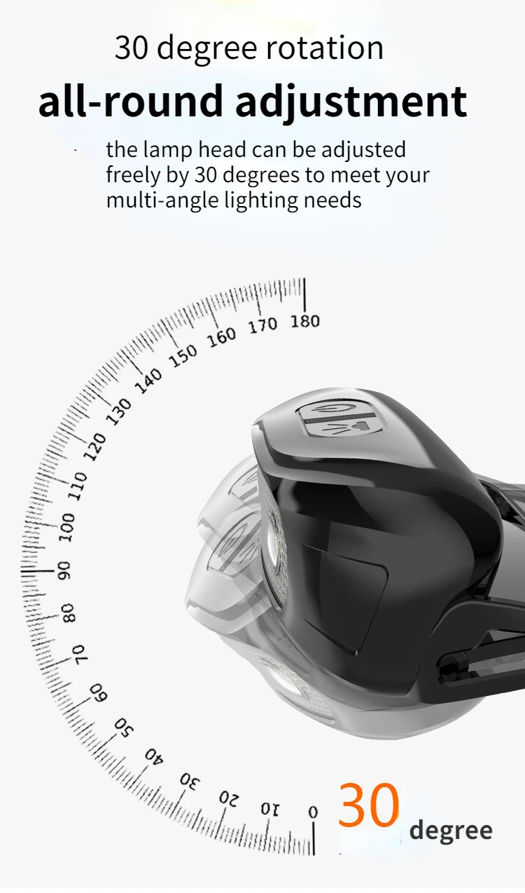 Features: Small and lightweight, the headlight can be adjusted up and down 30° with induction