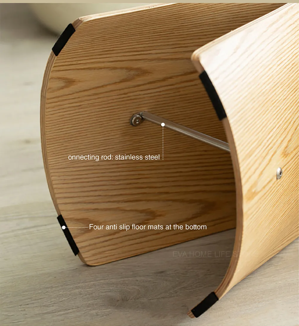 With a unique hot bending process, a beautiful curved seat surface is bent. The natural ash wood texture is clear and beautiful, showing a symmetrical pattern.