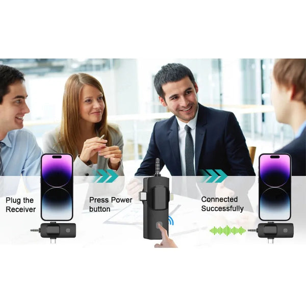 Professional 4 In 1 Wireless Lavalier Microphone for iPhone Android 3.5mm for radio Live Recording Noise Reduction Mini Microphone
