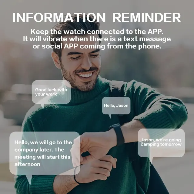 1. Notification:Synchronous incoming messages notification from Notification Center in your phone(SMS, social app, etc.),incoming call reminder.