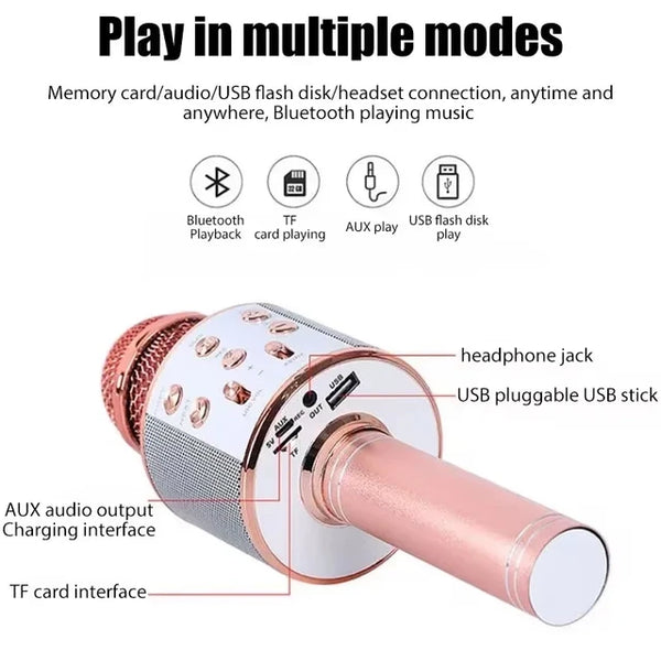 WS858 Professional Handheld Wireless Karaoke Microphone USB Speaker Microphone for Kids Music Player Singing Recorder KTVDescription